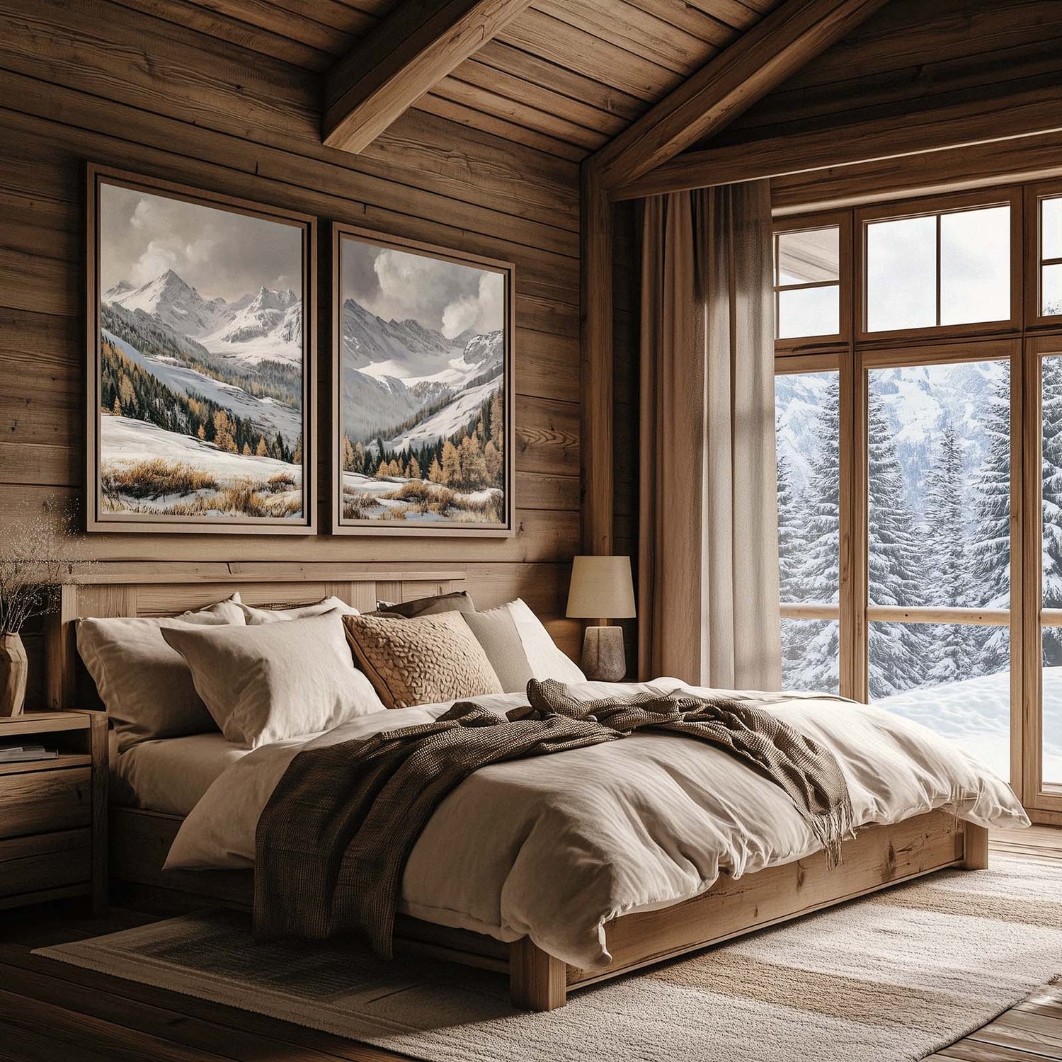 Hochwertige Poster mit Berggipfeln, schneebedeckten Hängen, malerischen Tälern und anderen Naturwundern der Alpen. Jedes Stück ist so gestaltet, dass es die Wärme und Ästhetik widerspiegelt, die für Schweizer Chalets typisch ist.