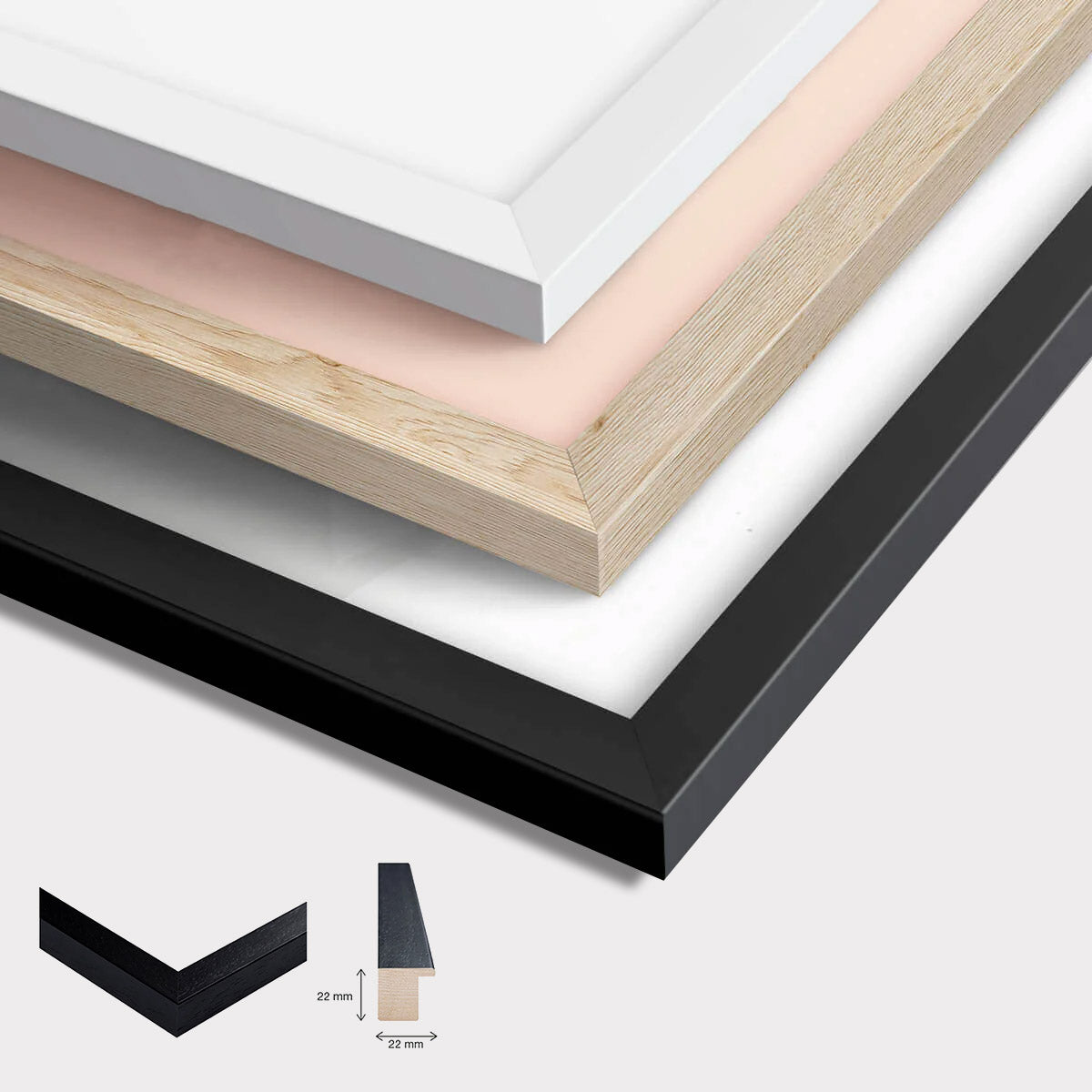 Verleihen Sie Ihrem Interieur mit unseren hochwertigen Holzrahmen einen Hauch von Eleganz und Stil. Wir bieten drei Farboptionen: klassisches Schwarz, elegantes Weiß und natürliches Beige, sodass Sie die perfekte Ergänzung für Ihren Raum auswählen können.