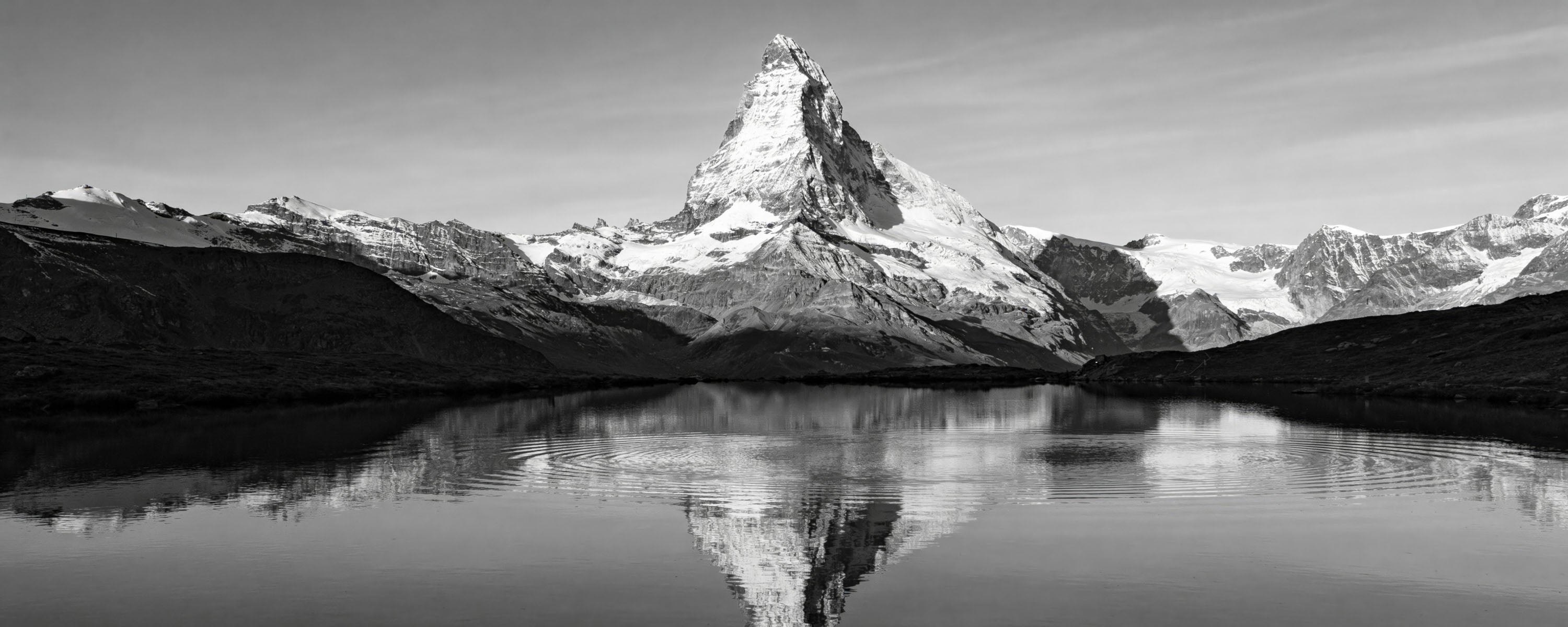 Des transitions tonales subtiles et un contraste fin soulignent la profondeur, l'échelle et le caractère intemporel du paysage alpin.