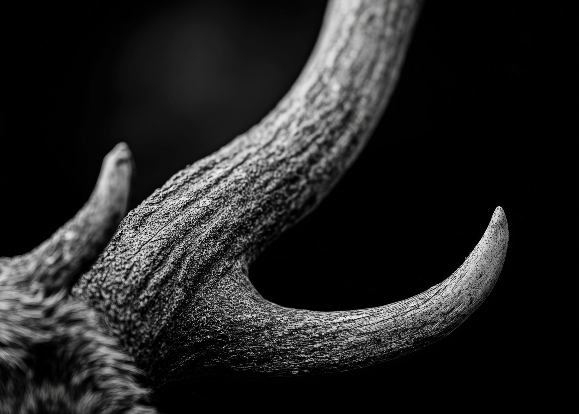 Fine texture emerges through controlled light and deep shadow, creating a calm yet commanding presence.